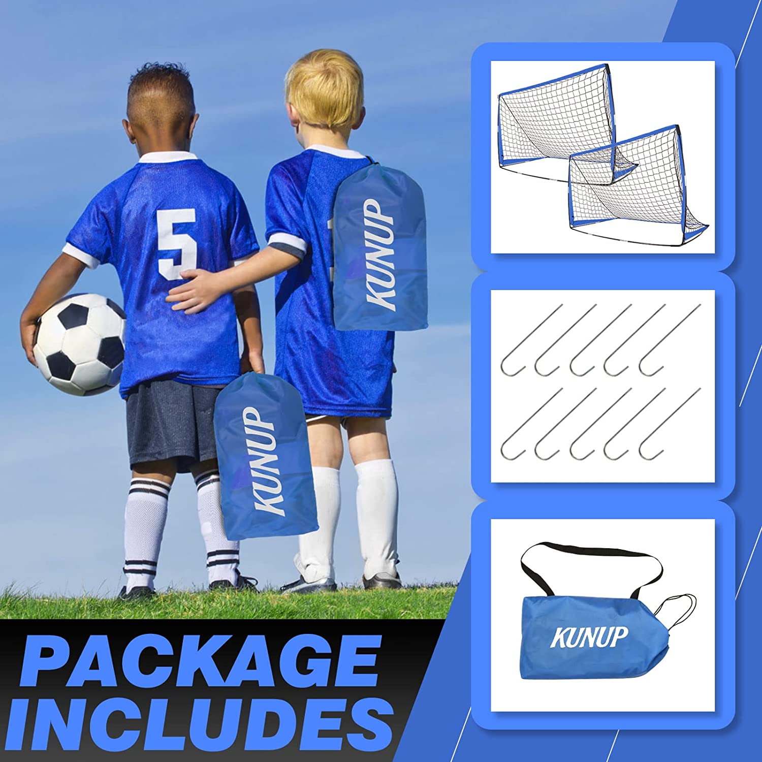 Soccer Goals for Backyard for Kids, Portable Soccer Nets Set, 2 Packs Pop up